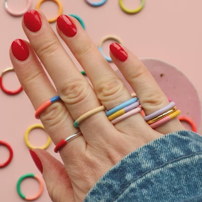 Bei LULU Copenhagen ist unsere Liebe zur Farbe unverkennbar. Wir spielen mit einer Fülle von Materialien - von Sterling Silber 925 und Messing bis hin zu 18 Karat Vergoldung. Dazu kommen wunderschöne Steine, Perlen und nicht zuletzt unsere ikonischen, handgemalten Emaillefarben, die jedem Schmuckstück seinen eigenen, einzigartigen Look verleihen.